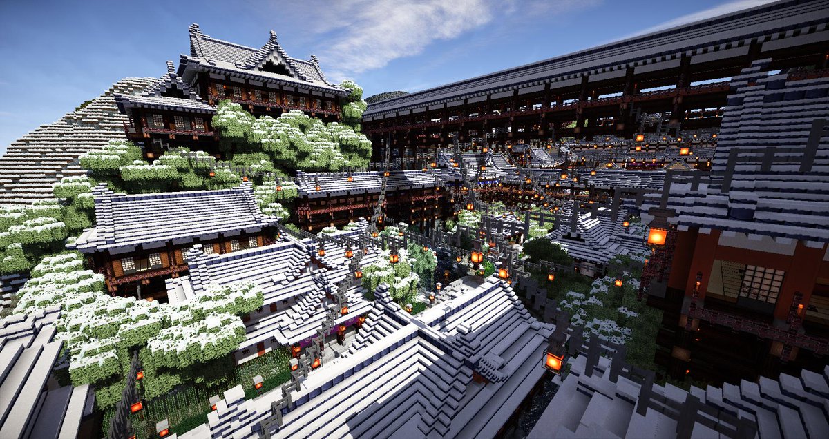 Tachibanatex3d ファンタジー和風 をテーマにminecraftで作成した渓谷の和風都市の全景が完成しました 和風の旅館街のような街並みを目指して作った街になります 作成期間 1年8ヶ月 テクスチャ 自作の専用テクスチャ Http T Co Ylge6v2jph