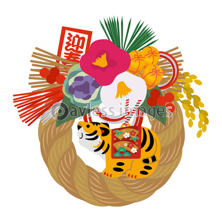 22年 年賀状 寅年 トラの置物と正月飾り イラスト 商用利用可能な写真素材 イラスト素材ならストックフォトの定額制ペイレスイメージズ